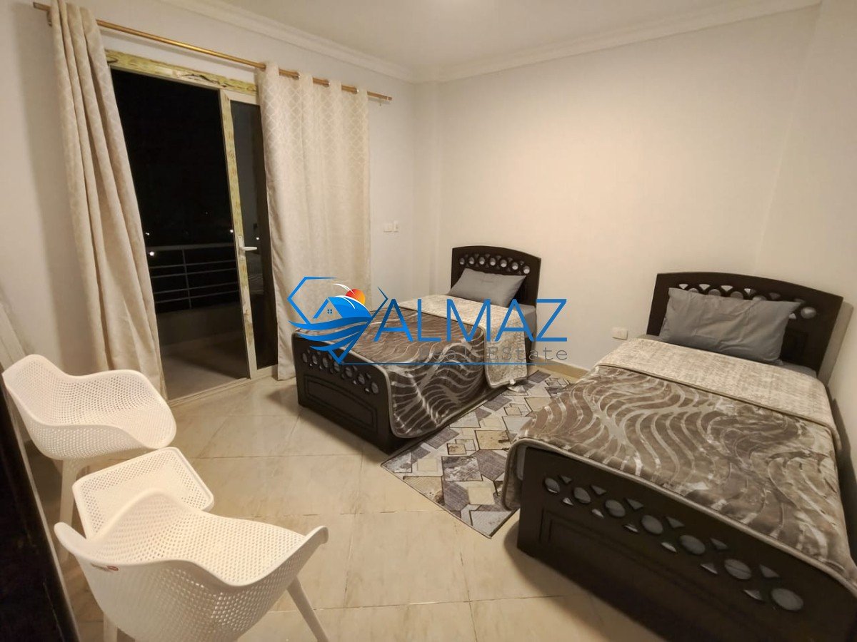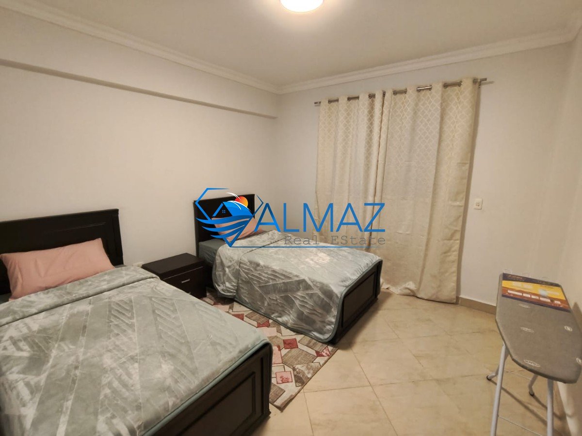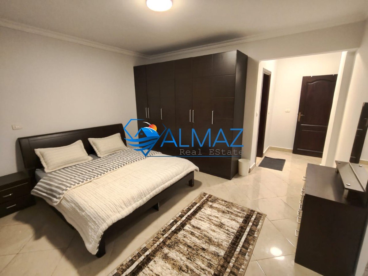 E13401T (B) No brokers allowed. Furnished apartment for rent in Dar Misr Al Andalus Compound, Fifth Settlement. Area: 130 sq m. 3 bedrooms, including a master bedroom. 2 bathrooms. First occupancy. All utilities connected. Internet access. Security cameras. Ground floor. Price: 22,000 EGP